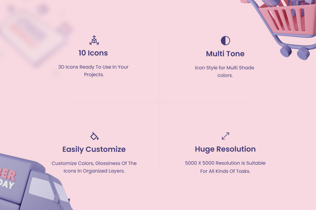 Create awesome project with our thoughtfully designed Cyber Monday 3D Icons. With these icons, make your Landing Pages, Apps, Presentations look more professional & stunning look π